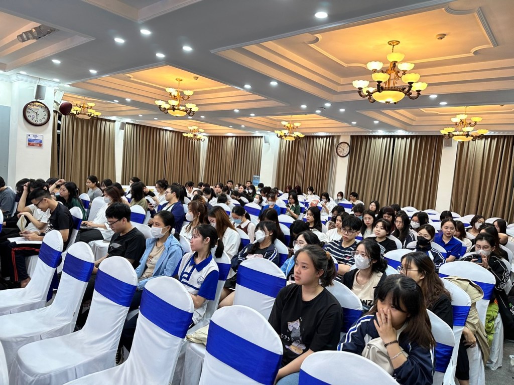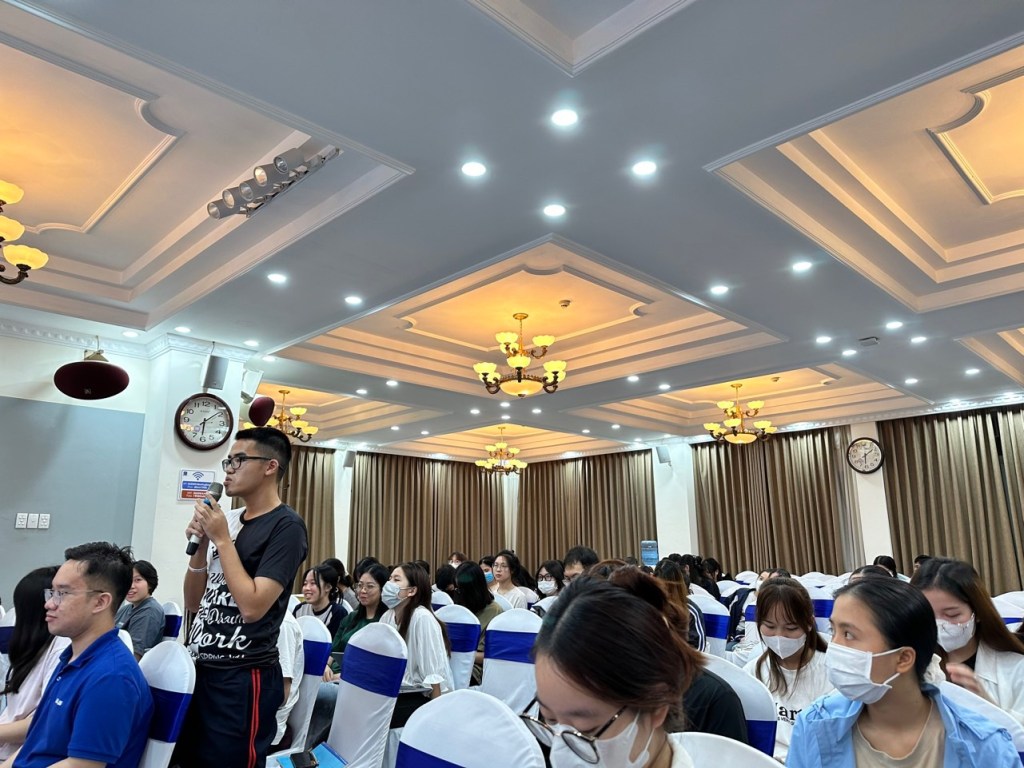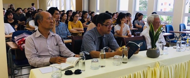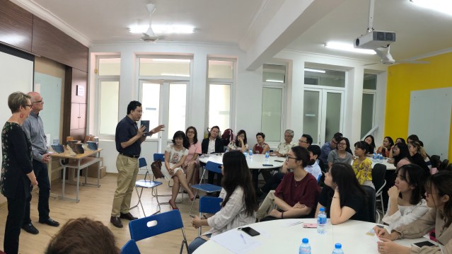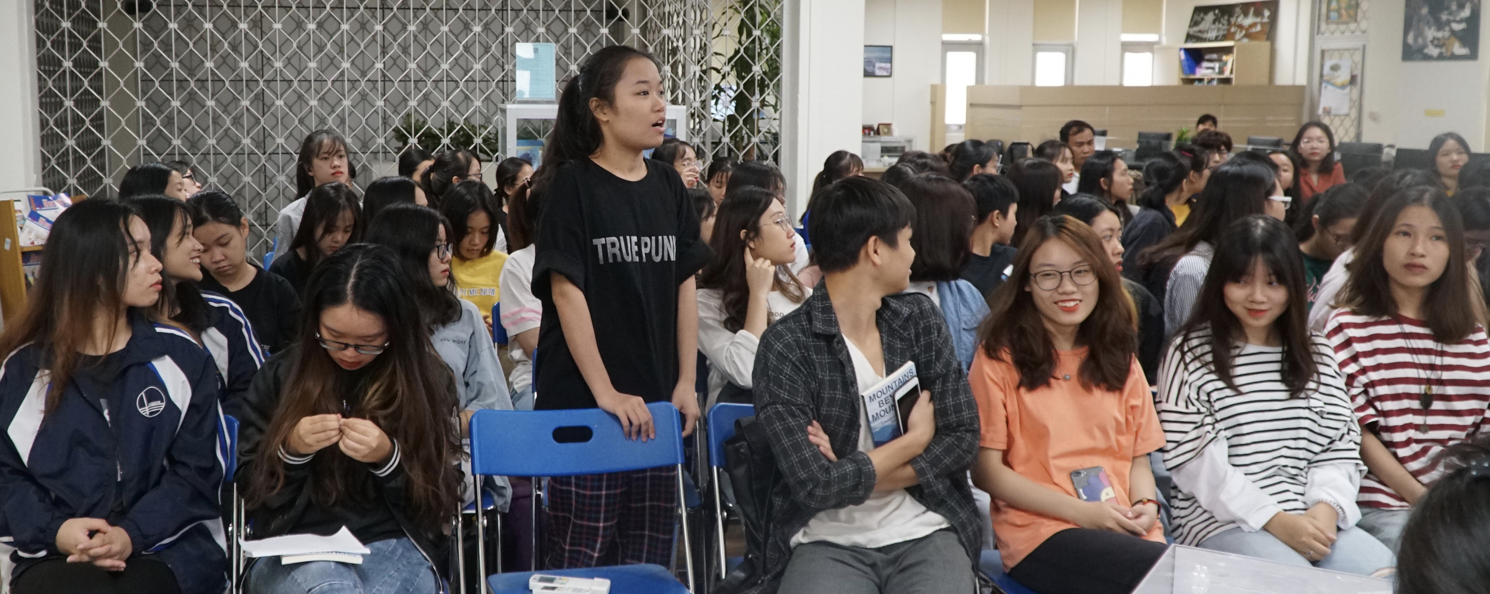 On October 31st, 150 students attended a “Talk Show” at the University of Languages and International Studies/Vietnam National University in Hanoi. The audience was made up of four classes, including honors “Fast Track” teacher education students, and those taking a “Designing Your Life” course, part of the university’s attempt to address student wellness through mindfulness and other holistic practices.