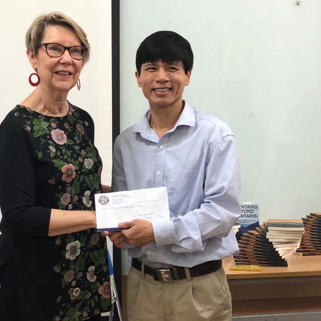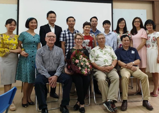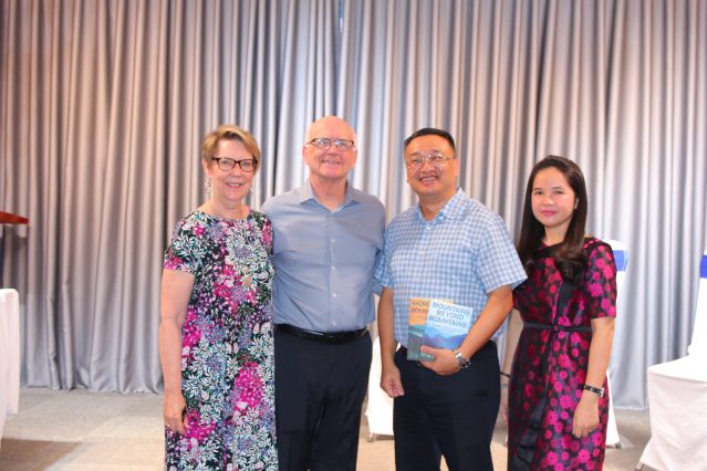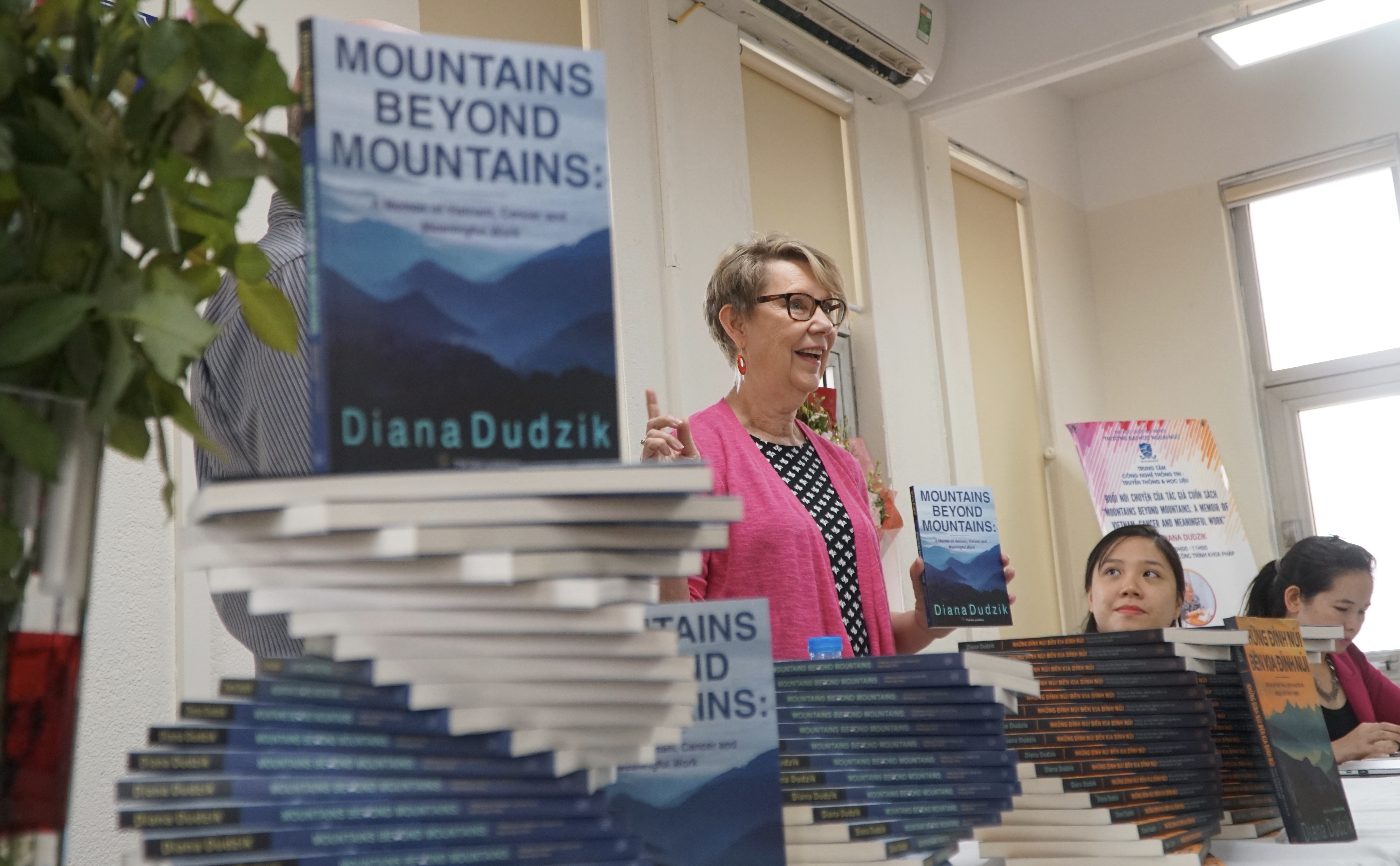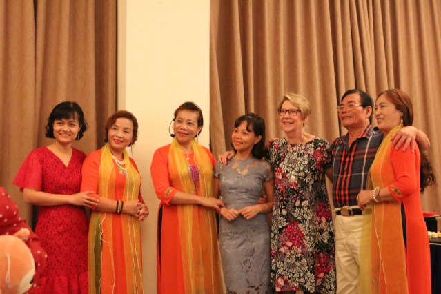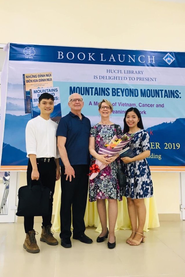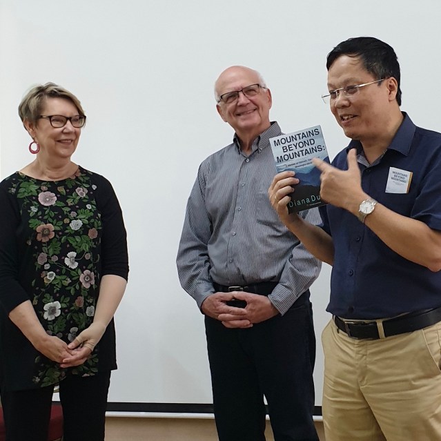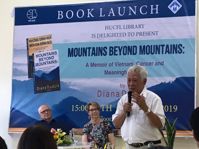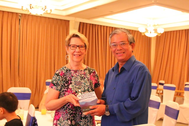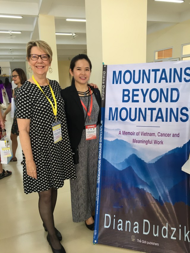 Diana was invited to talked about her work in Vietnam, her doctoral studies later in life, and the shocking cancer diagnosis that she received just days before defending her dissertation. She shared how she and her husband Jerry lay in bed, held each other and cried, and how her oncologist told her she’d give her a week, but not two, before starting treatment for an aggressive, often deadly form of breast cancer. And she talked about the holistic practices that held her together throughout her treatment and beyond, when she and her husband returned to Vietnam to say goodbye, not knowing if she would live. The audience burst into applause as Diana told them that she had asked God for “ten years or more, according to God’s will,” and that the sixteen year anniversary of her diagnosis was coming up in mid-November, 2023.